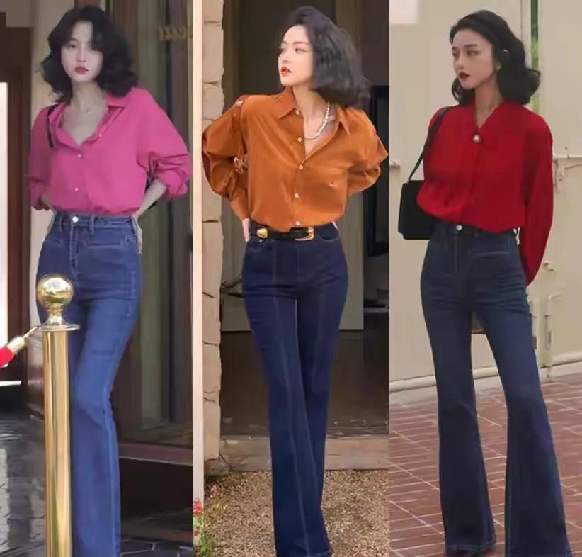 有我身材比较偏瘦的女性,还可以尝试那种港风味的穿衣打扮,例如直接选择一件比较经典色调的衬衫,搭配上微喇叭的牛仔裤,再加上一款摩卡波波头卷发造型,这样的穿衣打扮经典耐看。