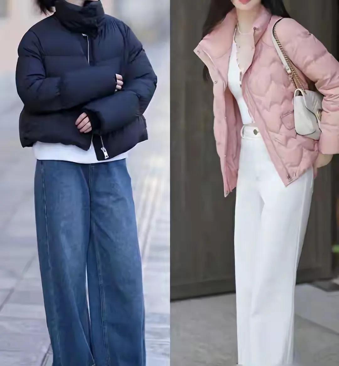 咱们可以像下面这位达人一样,用一件黑色的短款羽绒服内搭白色的卫衣或者是T恤,下半身搭配上牛仔阔腿裤,这样的穿衣造型保暖舒适,简约时髦。